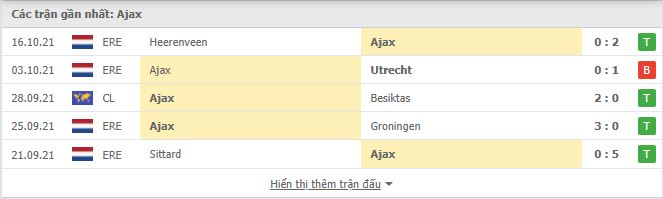 Thống kê phong độ gần đây Ajax vs Borussia Dortmund