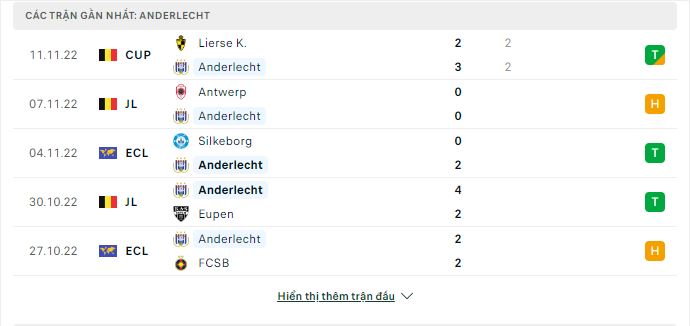 - Phong độ Anderlecht
