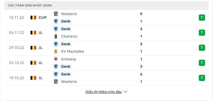 - Phong độ KRC Genk