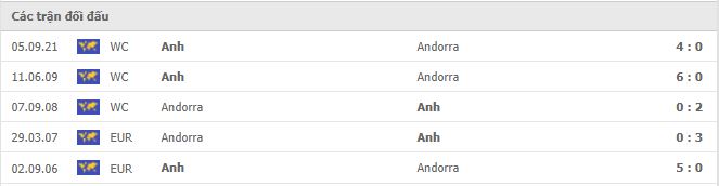 Lịch sử không dành cho kẻ yếu. Thống kê cho thấy trong quá khứ ĐT Andorra đã có 5 lần so tài với những người đồng nghiệp đến từ xứ sở Sương mù. Không chỉ đang có thành tích toàn thua trước Tam sư, các học trò HLV Koldo Alvarez thậm chí chưa một lần ghi bàn vào lưới đối thủ. Kết quả tốt nhất của đội bóng Tây Âu trước ĐT Anh là trận thua 0-2 trên sân nhà ở vòng loại World Cup 2010