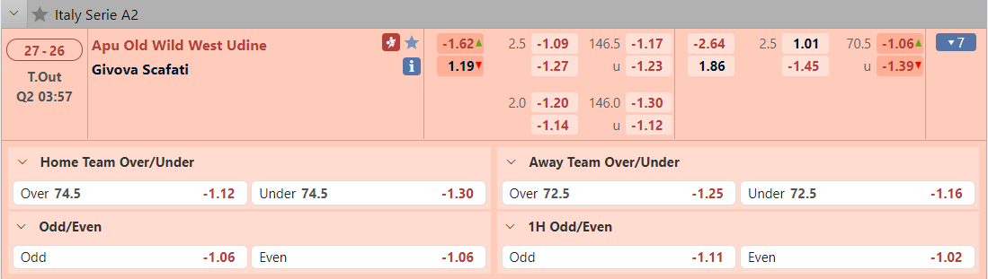 Bảng tỷ lệ kèo APU Udine vs Givova Scafati
