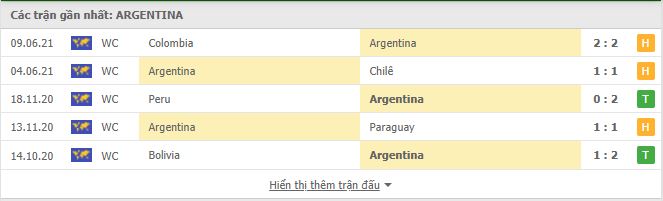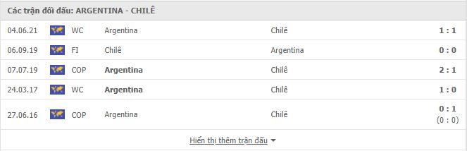 Thống kê phong độ gần đây Argentina vs Chile