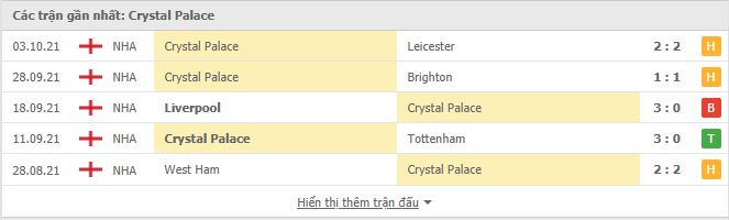 Thống kê phong độ gần đây Arsenal vs Crystal Palace