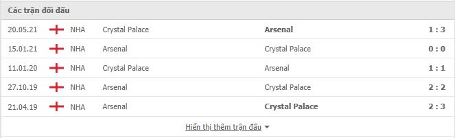 Thành tích đối đầu Arsenal vs Crystal Palace
