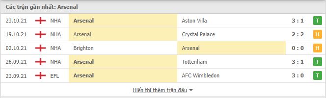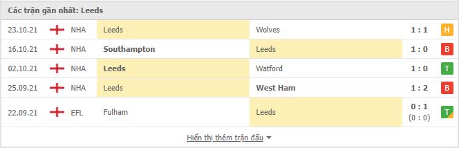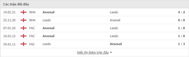 Thống kê phong độ gần đây Arsenal vs Leeds