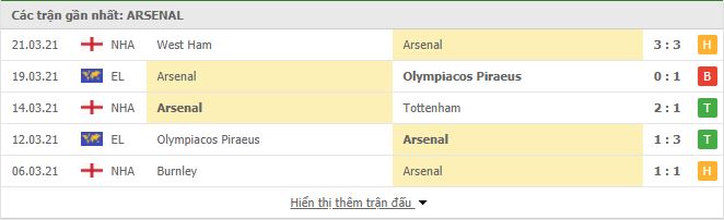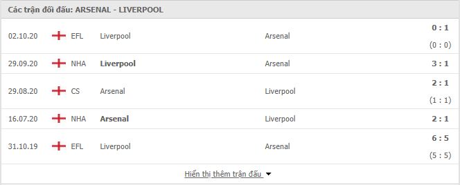 Thống kê phong độ gần đây Arsenal vs Liverpool