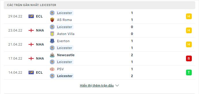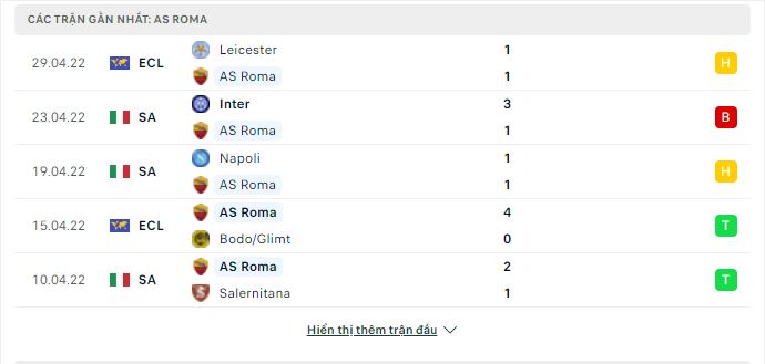 Thống kê phong độ gần đây AS Roma vs Leicester