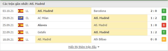 Thống kê phong độ gần đây Atletico Madrid vs Liverpool