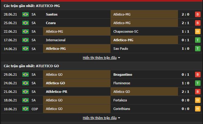 Phong độ gần đây Atletico-MG vs Atletico Goianiense:
