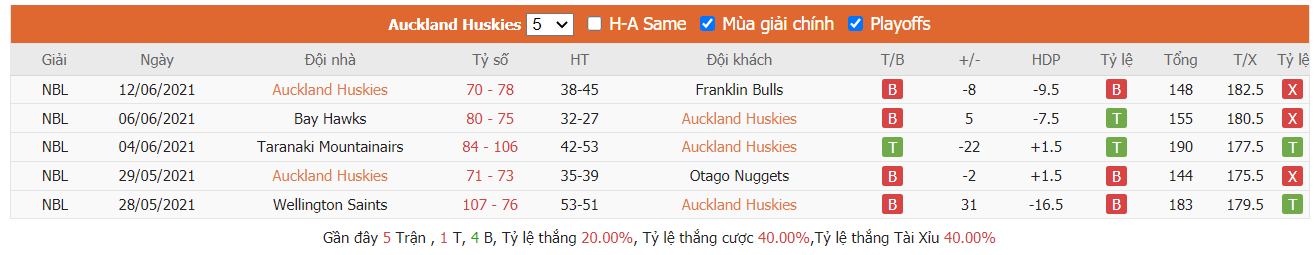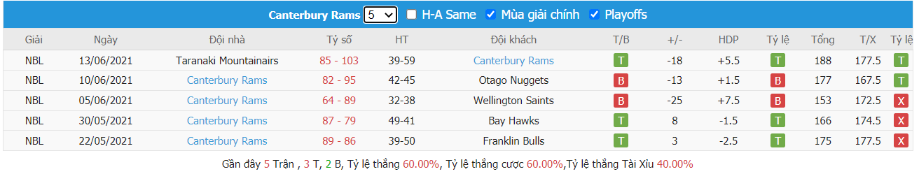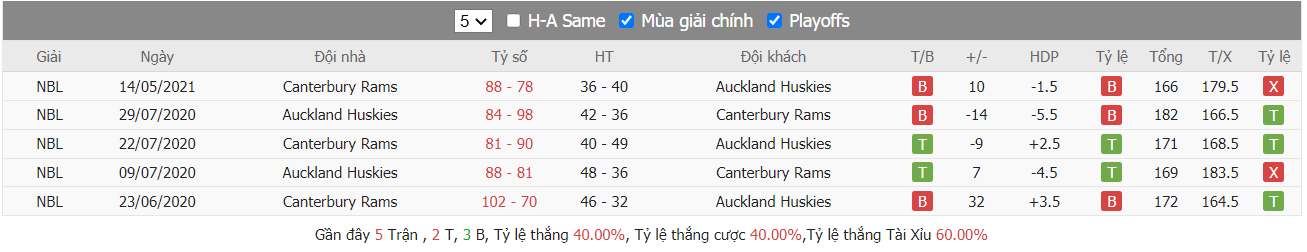 Thống kê cho thấy đội khách Canterbury Rams vẫn duy trì được phong độ thực dụng trong thời gian đã qua khi mà cứ trung bình mỗi trận trong tổng số 5 trận sân khách gần nhất, Canterbury Rams đều chỉ ghi được trung bình vỏn vẹn 70 điểm và cũng chỉ để mất trung bình vỏn vẹn 78 điểm. Từ đó dẫn tới đã có tới 8 trên tổng số 10 trận sân khách đã qua của đội bóng này đều đã không thể vượt mức niêm yết kèo tài xỉu theo mức TLCA. Vậy nên khả năng bùng nổ tỉ số ở trận đấu tới càng không được kỳ vọng hơn khi mà trong 4 trận sân nhà đã qua Auckland Huskies cũng đều chỉ ghi được vỏn vẹn 69 điểm mỗi trận.