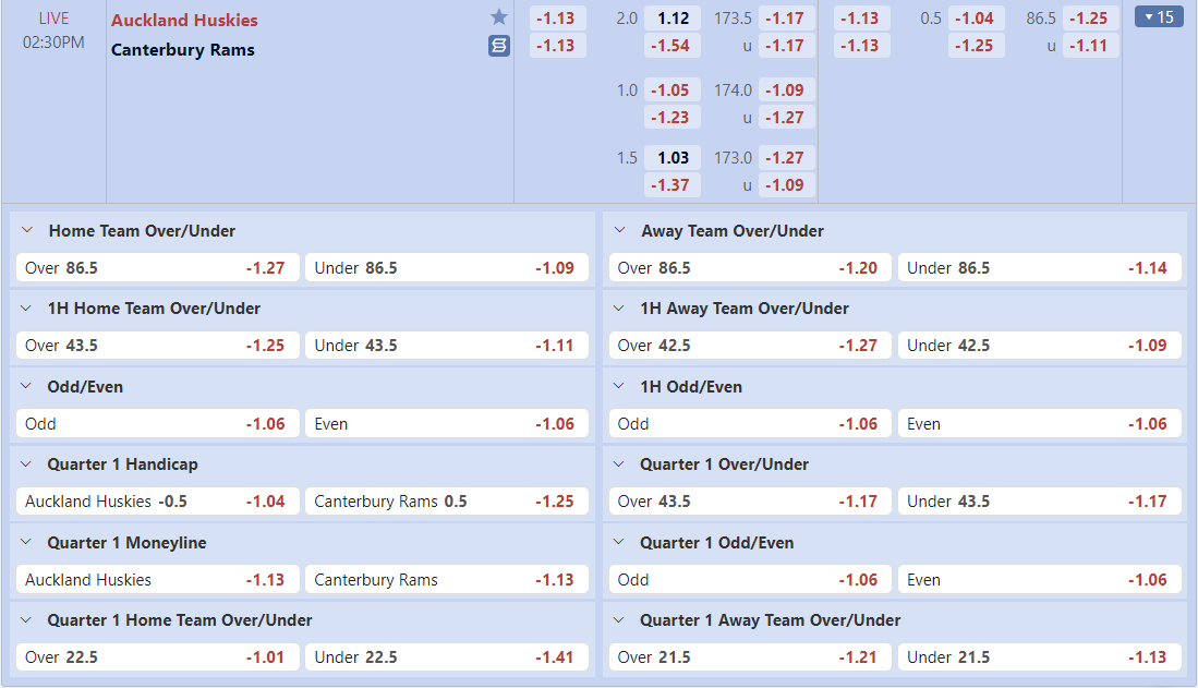 Bảng tỷ lệ kèo Auckland Huskies vs Canterbury Rams