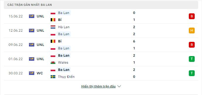 Thống kê phong độ gần đây Ba Lan vs Hà Lan