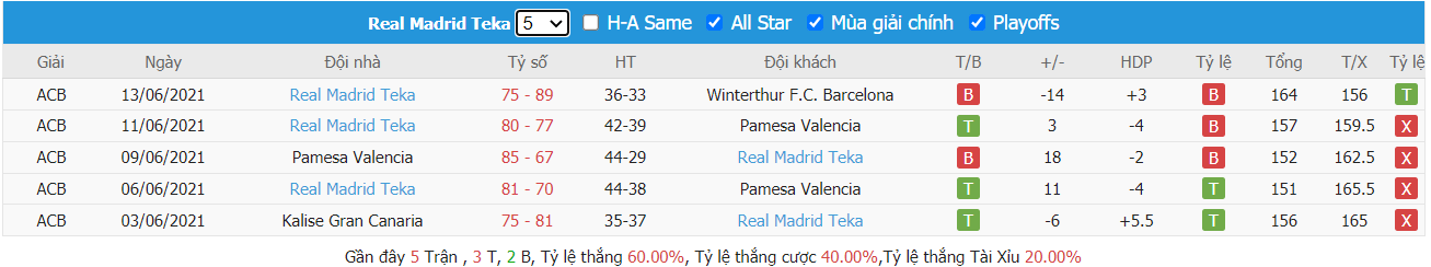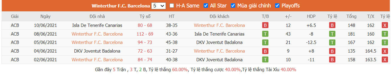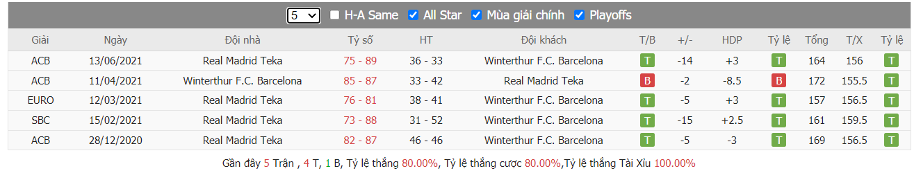 Thống kê cho thấy là Real Madrid đang được đánh giá cao hơn ở trận tới nhưng đội lại cũng không quá hiệu quả trong lối chơi tấn công áp sát và lên rổ đối thủ khi chỉ ghi được vỏn vẹn 112 điểm trung bình mỗi trận qua 5 trận ra sân gần nhất trên sân đối thủ. Bên cạnh đó hàng thủ với những cú block uy lực cùng các tình huống rebound hiệu quả đang mang lại thành công cho Winterthur F.C. Barcelona khi đội chủ nhà chỉ để mất trung bình 107 điểm mỗi trận cũng qua thời gian kể trên. Từ đó dẫn tới đã có 4 trên 7 trận gần nhất của Real Madrid cũng đã khép lại với các kết quả chung cuộc về xỉu. Như vậy cửa xỉu ở trận này vẫn là sự lựa chọn sáng hơn với giới đầu tư nhất là khi đã có tới 6 trên 7 trận so tài gần nhất của hai đội cũng đã khép lại với kết quả tương tự.
