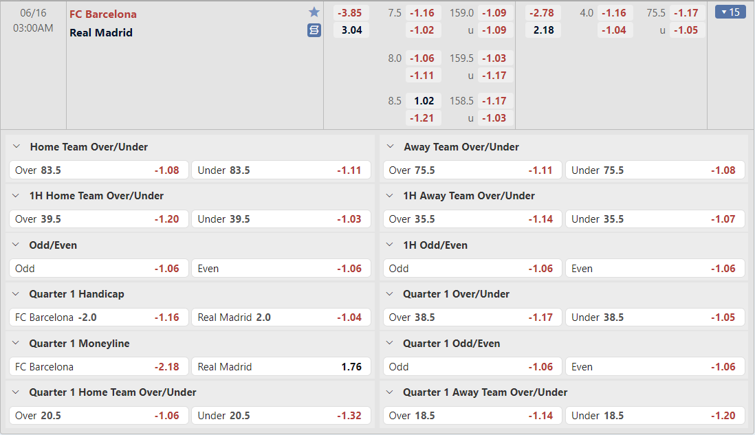 Bảng tỷ lệ kèo Barça Basket vs Real Madrid