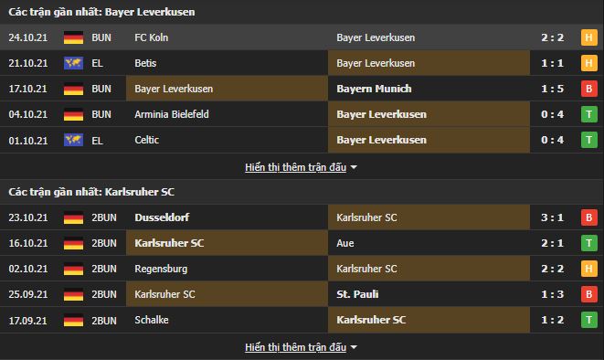 Phong độ gần đây Bayer Leverkusen vs Karlsruher: