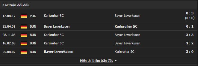 Thành tích đối đầu Bayer Leverkusen vs Karlsruher: