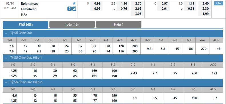 - Kèo tỉ số hiệp 1: Belenenses 0-0 Famalicao