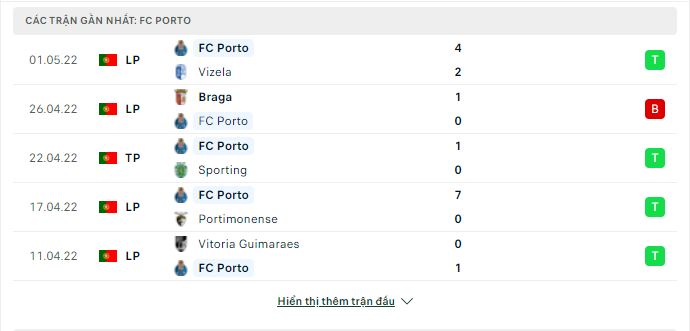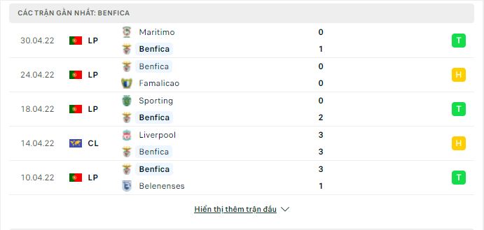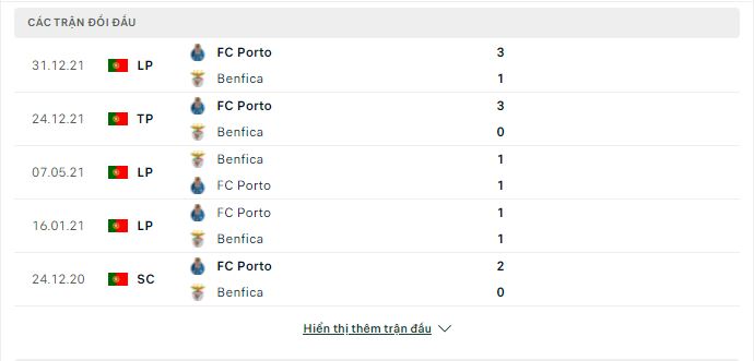 Thống kê phong độ gần đây Benfica vs FC Porto