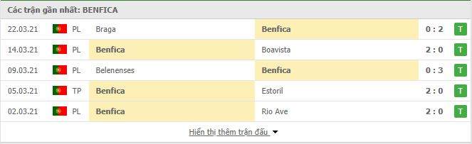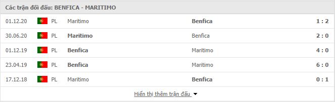 Thống kê phong độ gần đây Benfica vs Maritimo