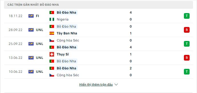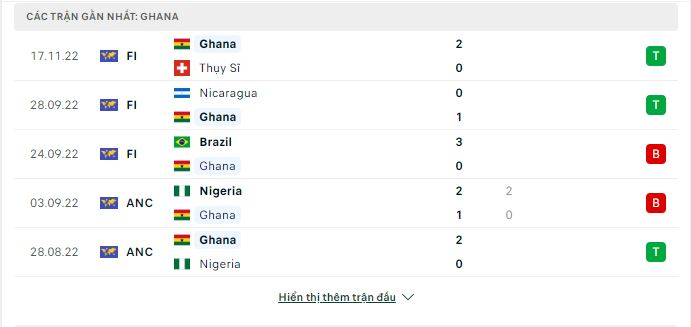 Phong độ gần đây Bồ Đào Nha vs Ghana