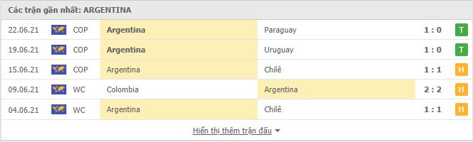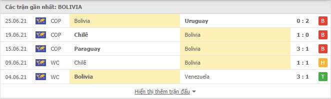 Thống kê phong độ gần đây Bolivia vs Argentina