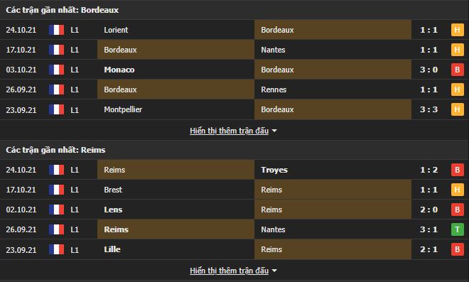 Phong độ gần đây Bordeaux vs Reims: