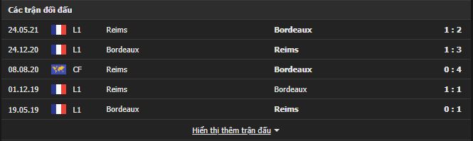 Thành tích đối đầu Bordeaux vs Reims: