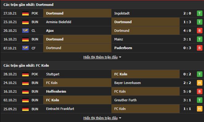 Phong độ gần đây Borussia Dortmund vs FC Koln: