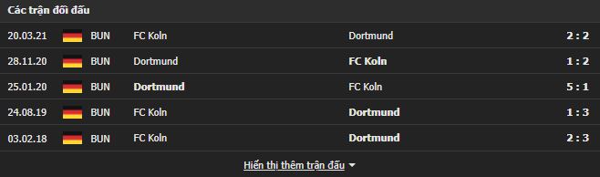 Thành tích đối đầu Borussia Dortmund vs FC Koln: