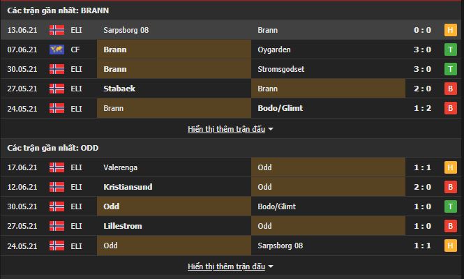 Phong độ gần đây Brann vs ODD Ballklubb: