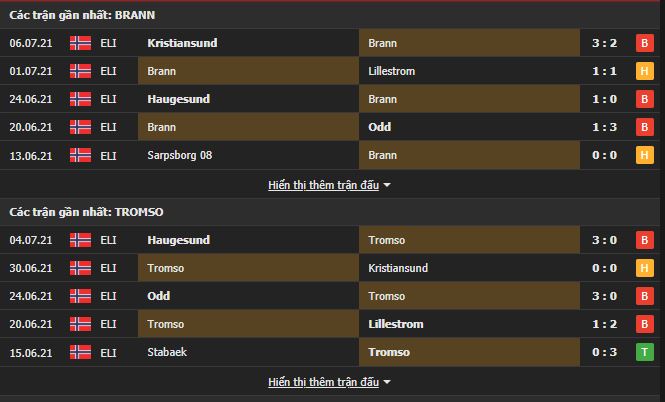 - Dự đoán tỉ số cả trận: Brann 2-2 Tromso