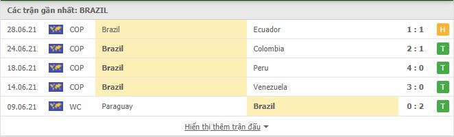 Trong 4 trận đấu đã qua ở Copa America năm nay chỉ 1 lần những vũ công Samba tịt ngòi ở 45 phút đầu tiên. Thống kê này cho thấy Neymar và các đồng đội đang hoàn thành rất tốt nhiệm vụ ghi bàn của mình. Điểm tựa sân nhà cùng phong độ ổn định chính là cơ sở để tin các học trò HLV Tite sẽ có một thế trận áp đảo cũng như lợi thế dẫn bàn trước giờ nghỉ. Chủ nhà và xỉu sẽ là những lựa chọn lý tưởng dành cho người chơi ở hiệp đấu này.