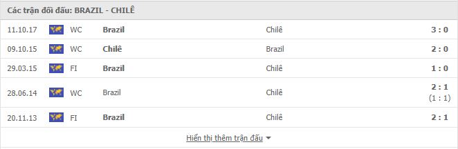 Lịch sử không dành cho Arturo Vidal và các đồng đội. Thống kê ở 10 lần gặp nhau gần nhất cho thấy sự vượt trội của các nhà ĐKVĐ khi Brazil có 7 chiến thắng, hai đội hòa nhau 2 lần và Chile chỉ có duy nhất 1 lần ca khúc khải hoàn. Nếu tính trong khuôn khổ giải vô địch các quốc gia Nam Mỹ, hai đội đã gặp nhau 21 lần và những vũ công Samba có 16 chiến thắng, 3 trận hòa cùng duy nhất 1 trận thua.