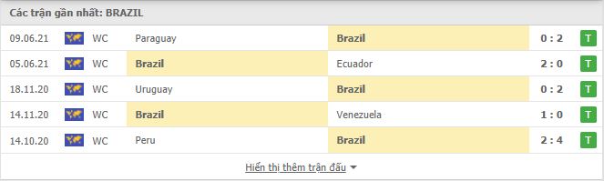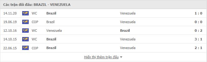 Thống kê phong độ gần đây Brazil vs Venezuela