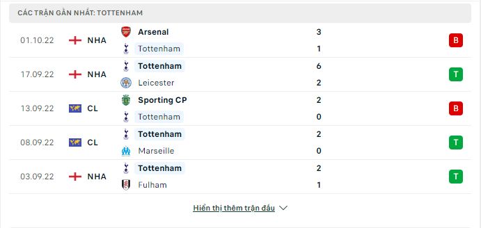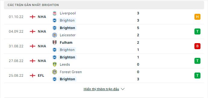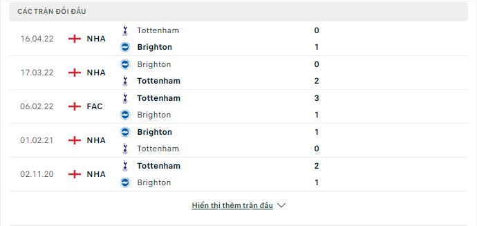 Thống kê phong độ gần đây Brighton vs Tottenham