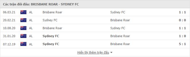 Thống kê phong độ gần đây Brisbane Roar vs Sydney FC