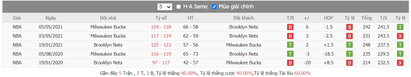Thành tích đối đầu Brooklyn Nets vs Milwaukee Bucks