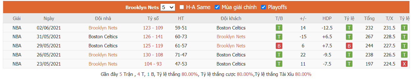 Thống kê cũng chỉ ra dù không được đánh giá cao ở trận tới nhưng Brooklyn Nets ở mùa này đang là đội có được hiệu suất ghi điểm khá tốt với trung bình 120 điểm mỗi trận trong 3 trận sân nhà gần nhất, đồng thời cũng đã để mất trung bình 118 điểm mỗi trận trong thời gian kể trên, từ đó dẫn tới cả 7 trận đấu gần nhất của Brooklyn Nets đều kết thúc với kết quả chung cuộc nổ tài. Ngược lại Milwaukee Bucks vẫn luôn thể hiện được sự áp đảo trong các lần đối đầu với chính Brooklyn Nets trước đây khi mà cả 4 lần đụng độ gần nhất, Á thần Hy Lạp Giannis Antetokounmpo cùng các đồng đội cũng đều ghi được trên 125 điểm mỗi trận, qua đó dẫn tới cả 4 trận kể trên cũng đều đã khép lại với các kết quả chung cuộc nổ tài. Vậy vên cửa tài ở trận đấu tới là sự lựa chọn rất khả quan cho giới đầu tư.