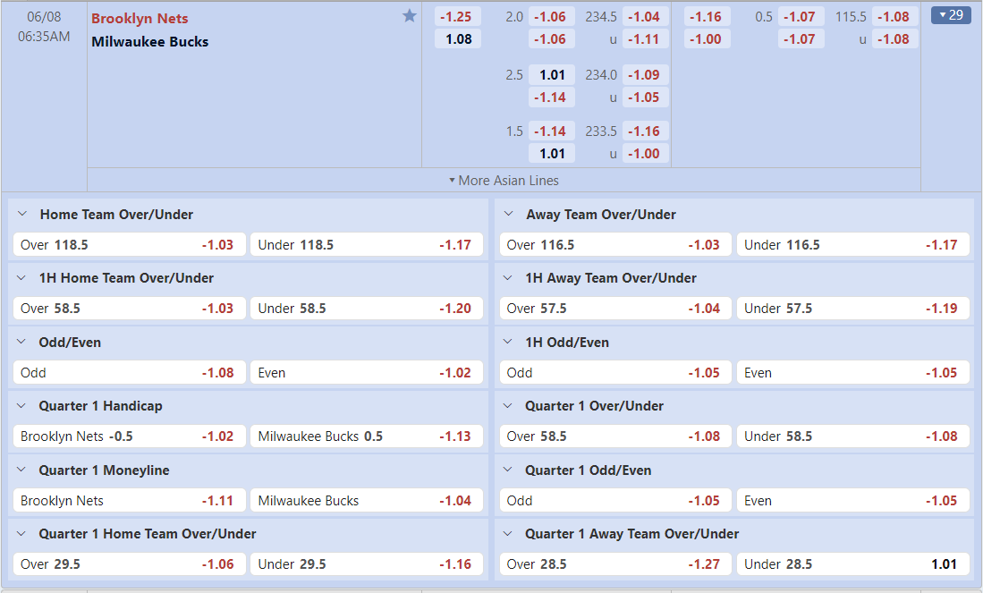 Bảng tỷ lệ kèo Brooklyn Nets vs Milwaukee Bucks