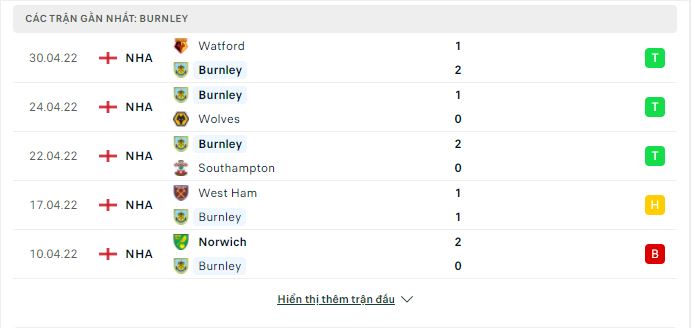 - Phong độ Burnley