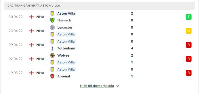 - Phong độ Aston Villa