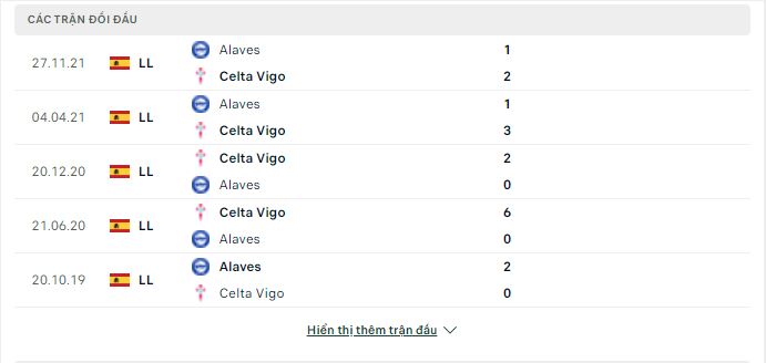 Lịch sử đối đầu Celta Vigo vs Alaves