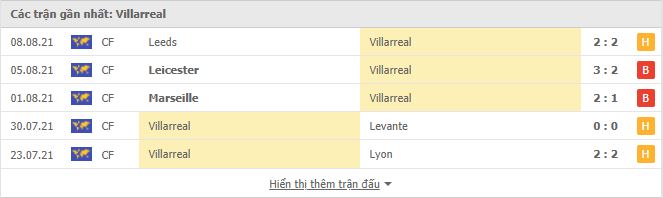 Thống kê phong độ gần đây Chelsea vs Villarreal