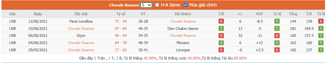 - Phong độ Chorale Roanne Basket