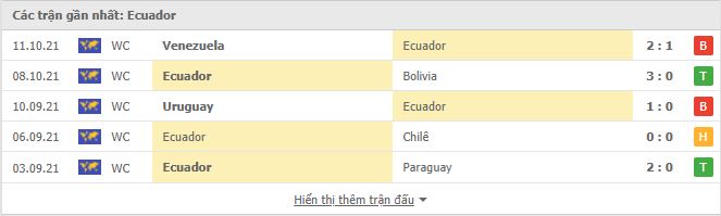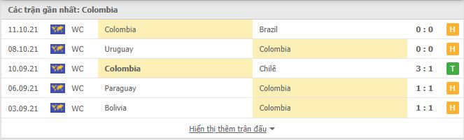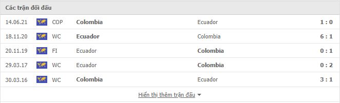 Thống kê phong độ gần đây Colombia vs Ecuador