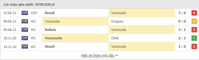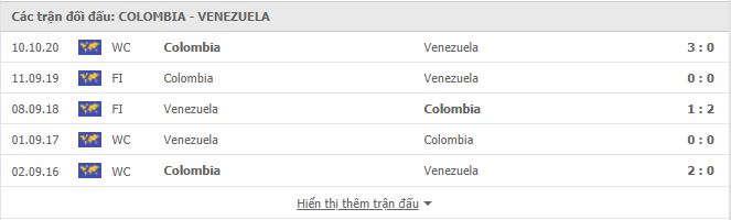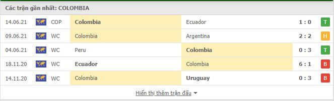 Thống kê phong độ gần đây Colombia vs Venezuela