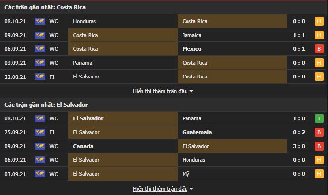 Phong độ gần đây Costa Rica vs El Salvador: