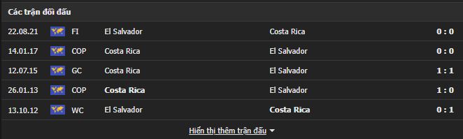Thành tích đối đầu Costa Rica vs El Salvador: