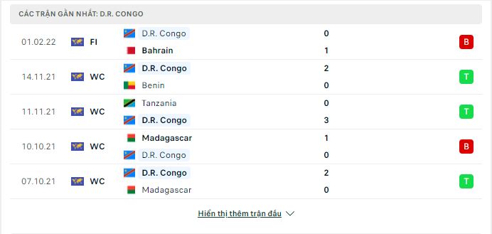 Thống kê phong độ gần đây D.R. Congo vs Ma Rốc