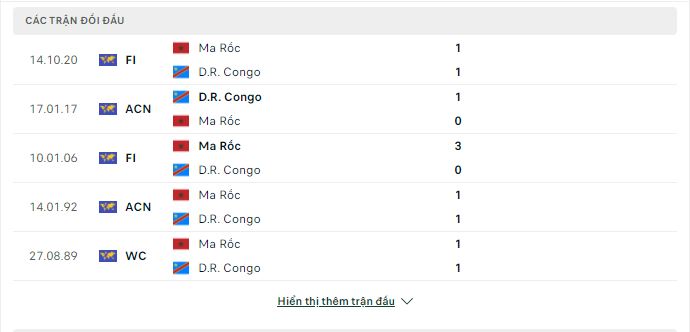Thành tích đối đầu D.R. Congo vs Ma Rốc